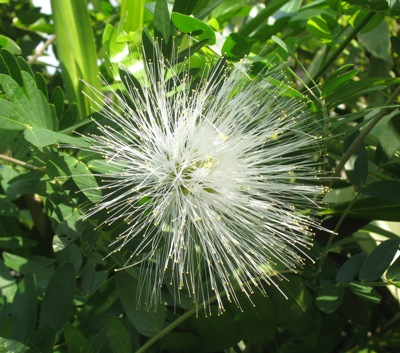 Как на фото, в пакете. Название на русском: Каллиандра Хаметофала (Белый цветок)