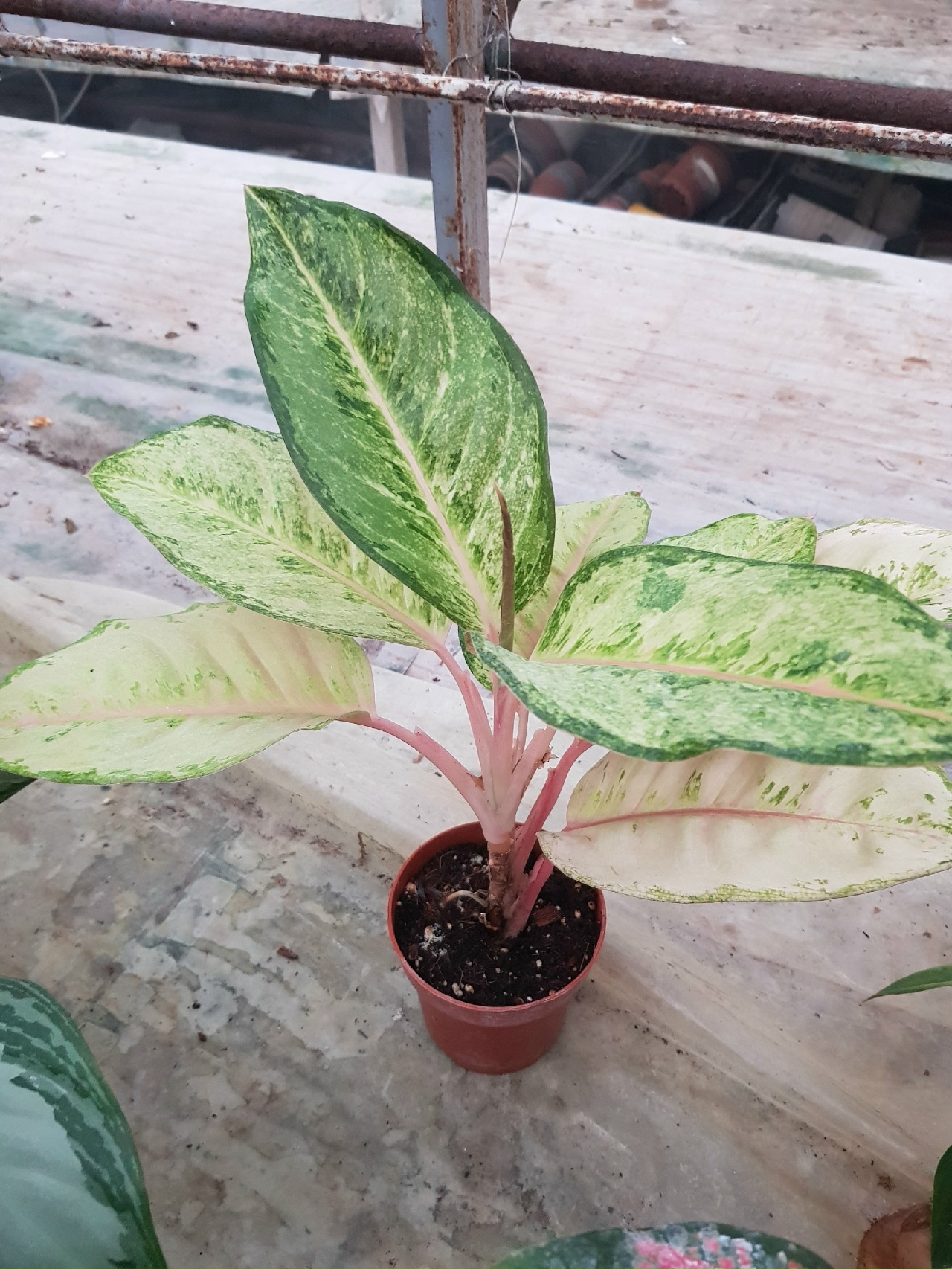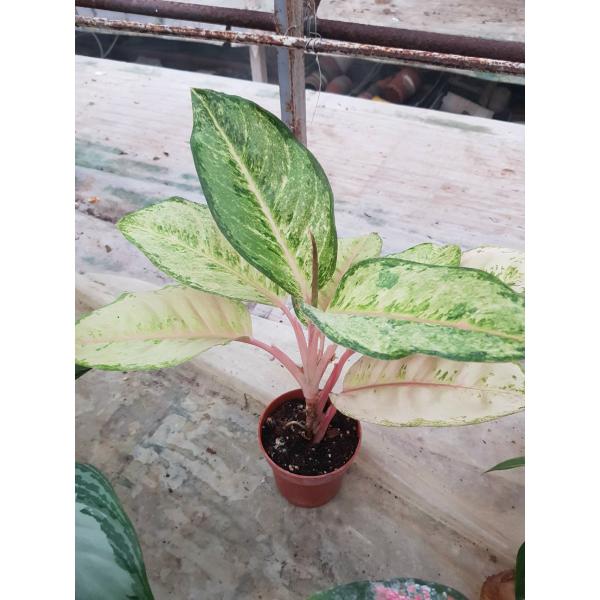 Как на фото, в горшке. Название на русском: Аглаонема Фрозен блэк (Frozen - с англ. "Заморженный" или "замерзший", black - с англ. "черный").