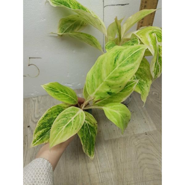 как на фото, в пакете. Название на русском: Аглаонема Зеленая.