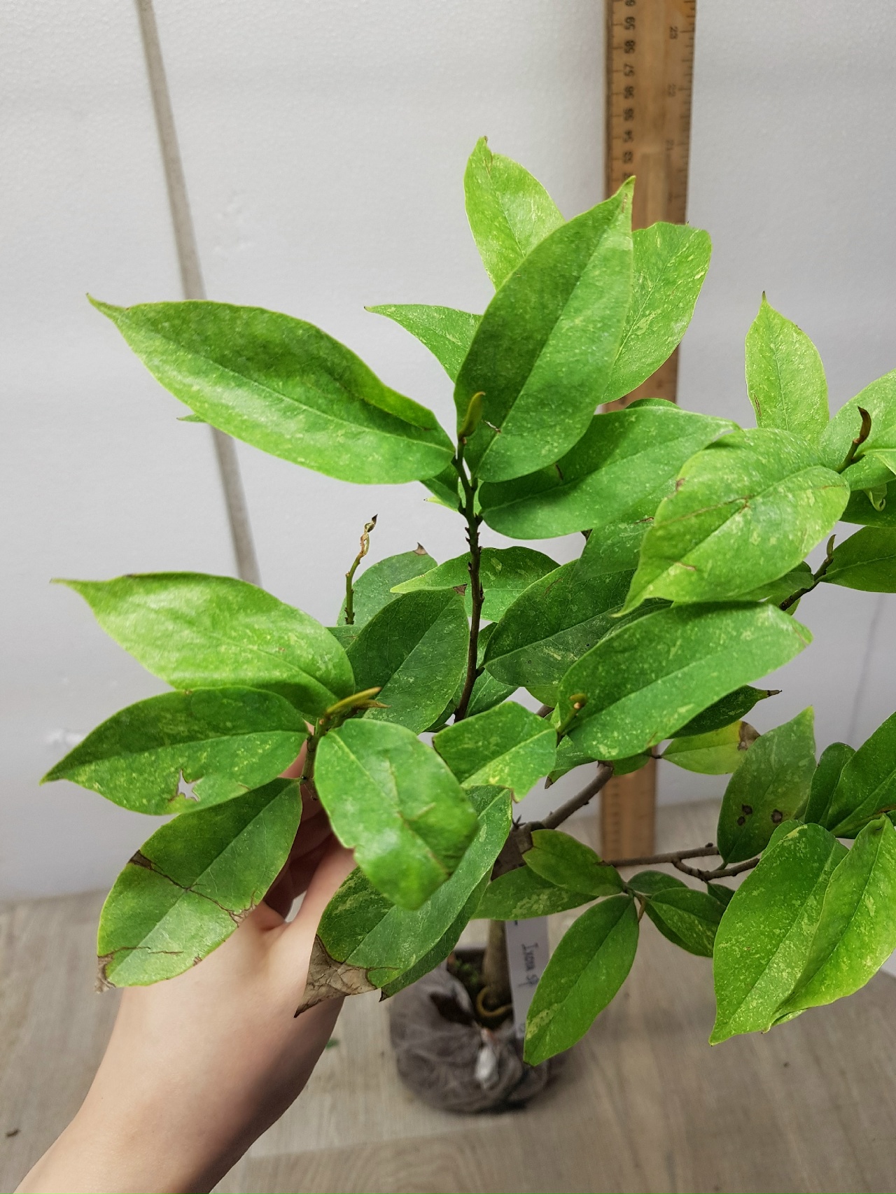 как на фото, в пакете. Название на русском: Аннона муриката варегатная (Привитый)