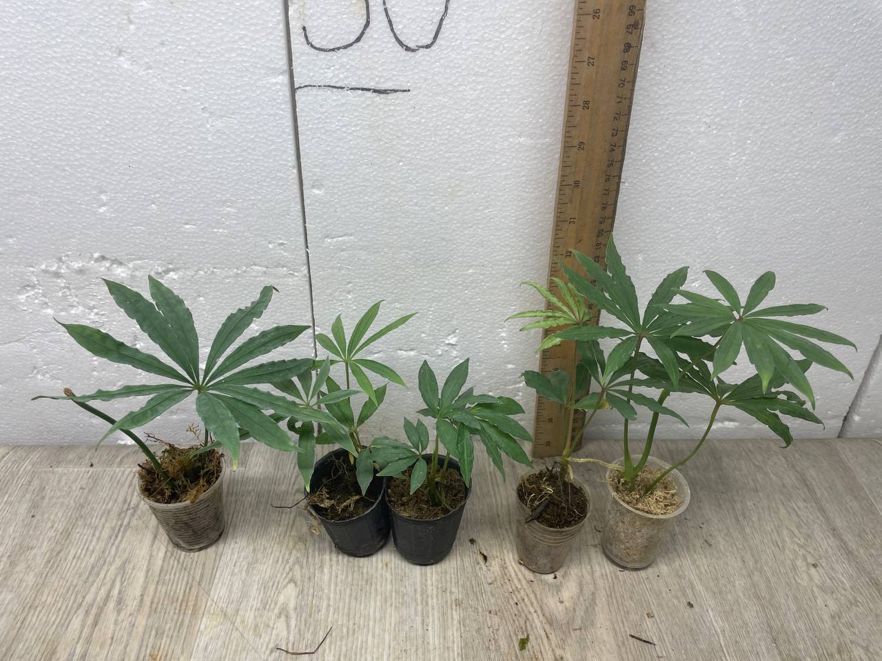 как на фото, в мягком горшке. Название на русском: Антуриум многорассечённый