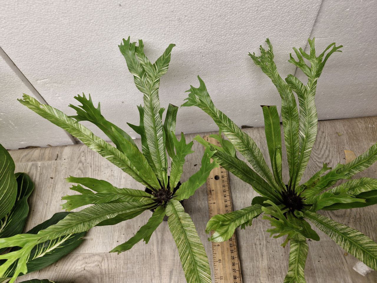 Как на фото, в горшке. Название на русском: Асплениум нидус варегатная Япония.