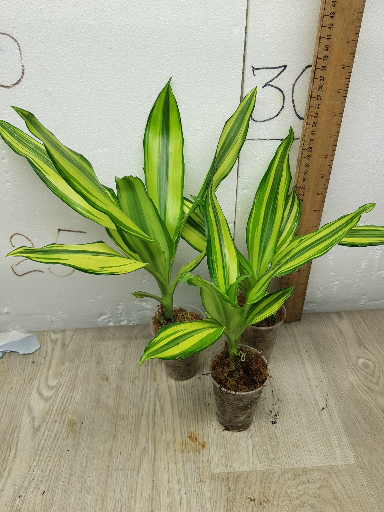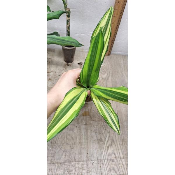 как на фото молодое растение в стаканчике Название на русском: Драцена желтая варегатность