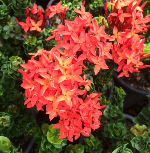 как на фото, в пакете. Название на русском: Иксора гибрид Хинди Роп (Hindu - с англ. "индуистская". Rope - с англ. "веревка")