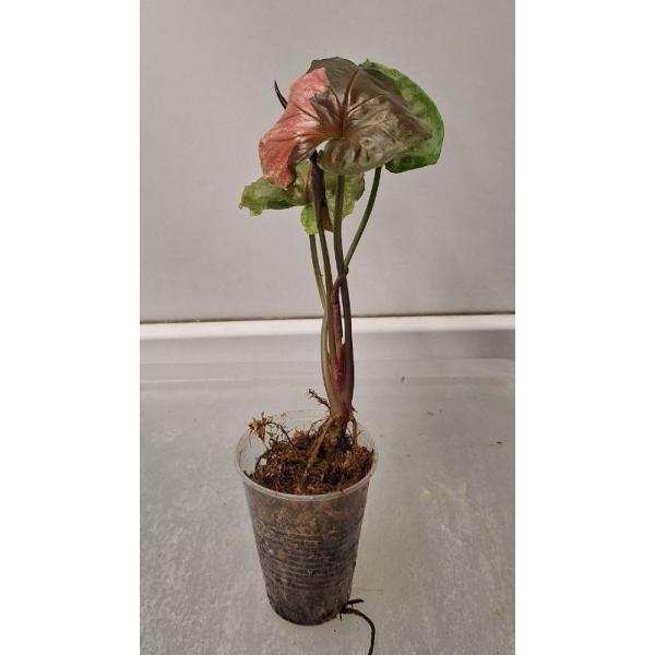 как на фото, в стакане. Название на русском: Сингониум Стравберри Айс