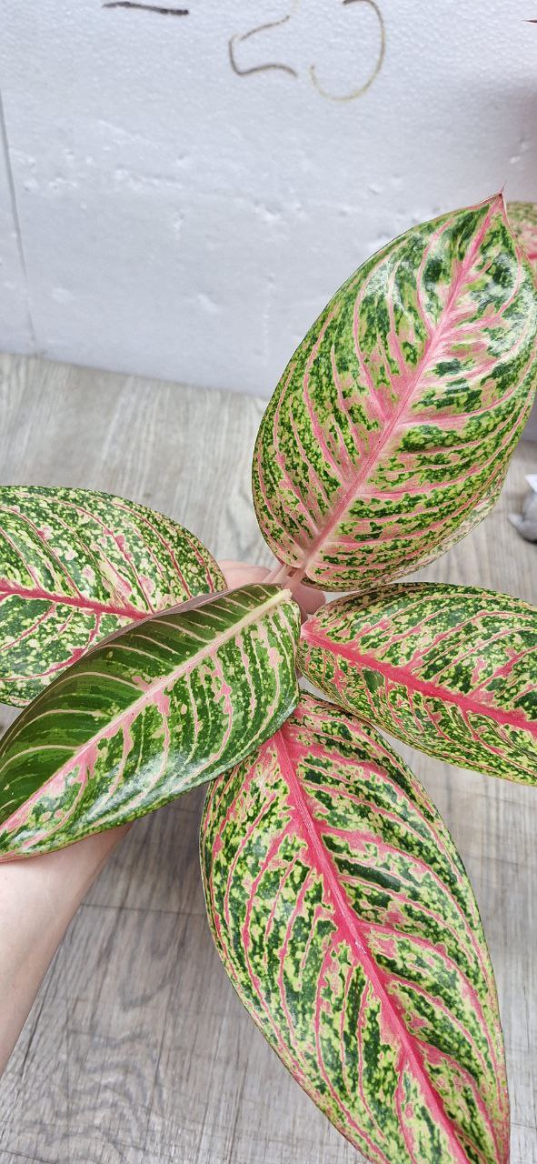 как на фото, в пакете. Название на русском: Аглаонема Диана.