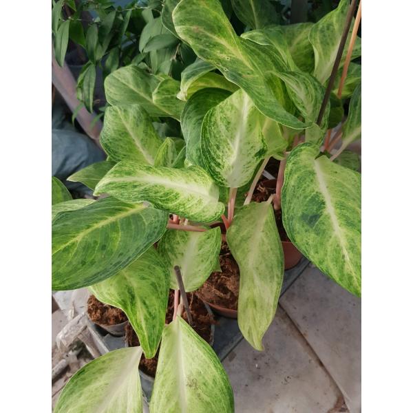 Как на фото, в горшке. Название на русском: Аглаонема Йеллоу Монгкон или Аглаонема Желтый Монгкон. (Yellow с англ. Желтый)